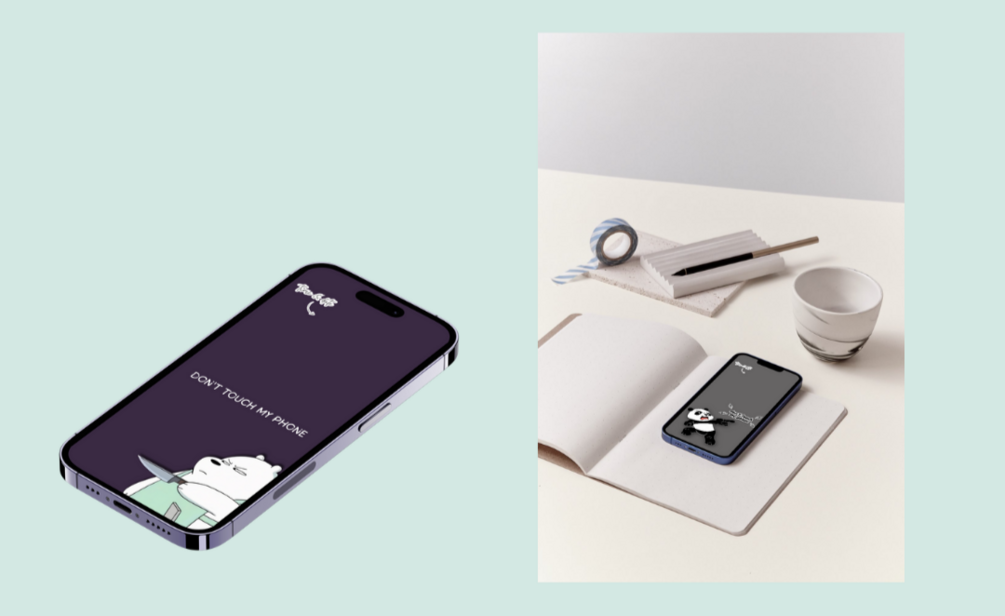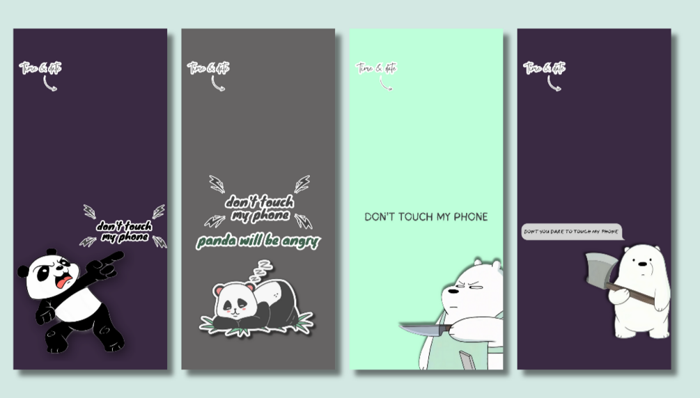 You will get 4 set of Panda lock screen wallpaper with 3 different colour of each resolution 1080 x 2400 px